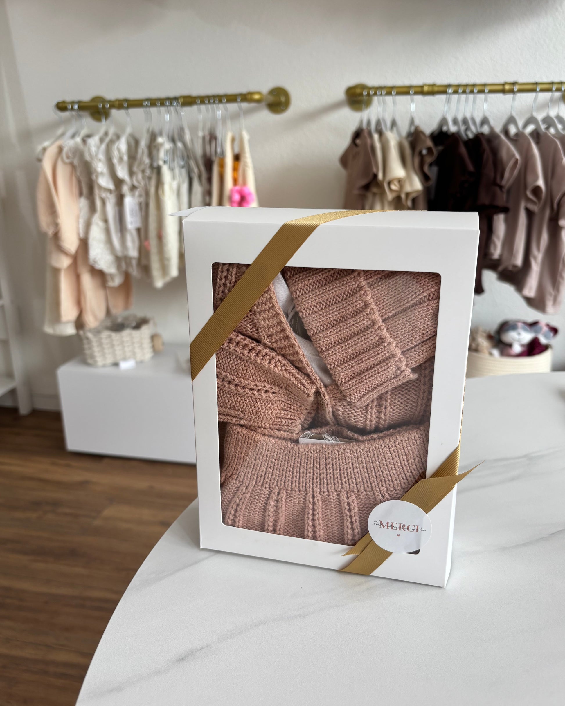 Coffret comprenant, la veste, le pantalon, le bonnet, 1 body en 3/6 mois.